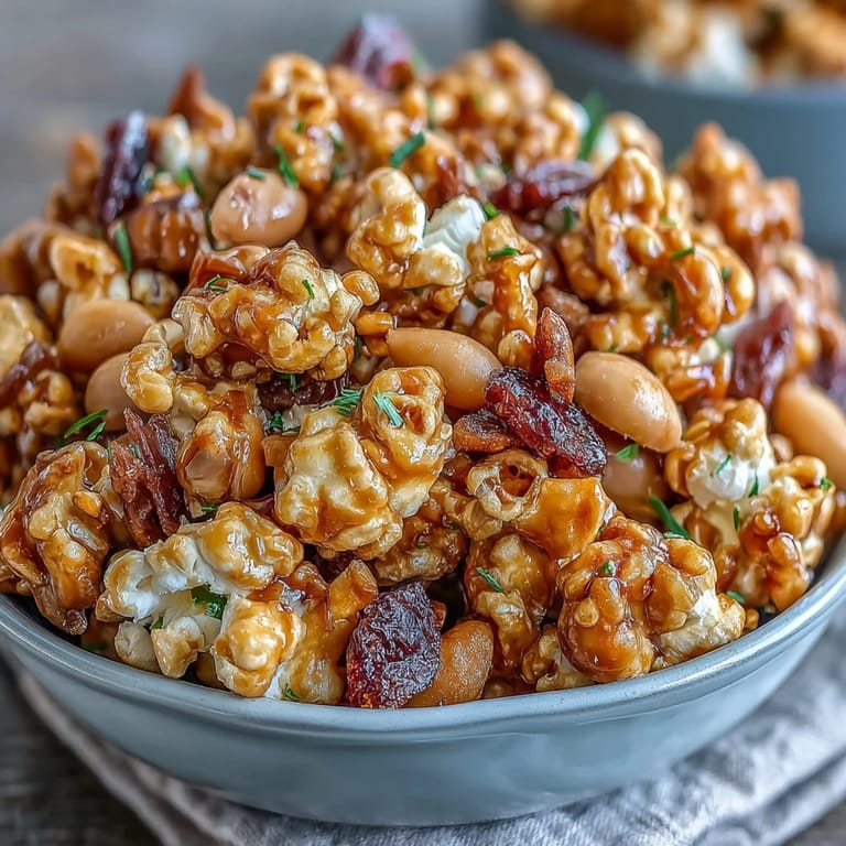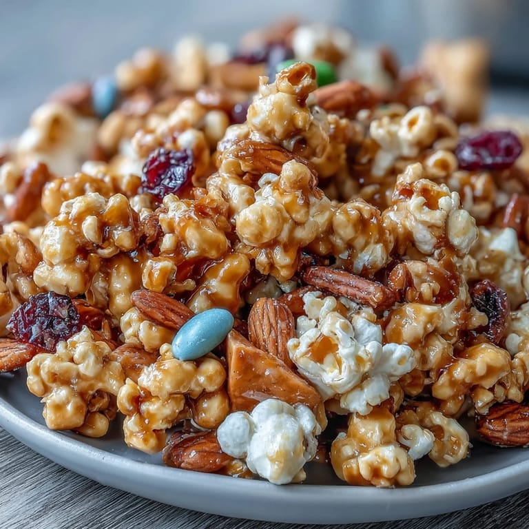 Save to Pinterest There's something magical about the combination of sweet caramel, crunchy popcorn, and the tart chewiness of dried apples. This Caramel Candy Apple Popcorn Mix brings together all the nostalgic flavors of a carnival candy apple with the addictive crunch of homemade caramel corn. Whether you're hosting a movie night, packing treats for a party, or simply craving a sweet and salty snack, this colorful mix delivers pure joy in every handful. The glossy caramel coating clings to each kernel, while candy-coated chocolates add pops of color and chocolatey sweetness that perfectly complement the fruity apple pieces.