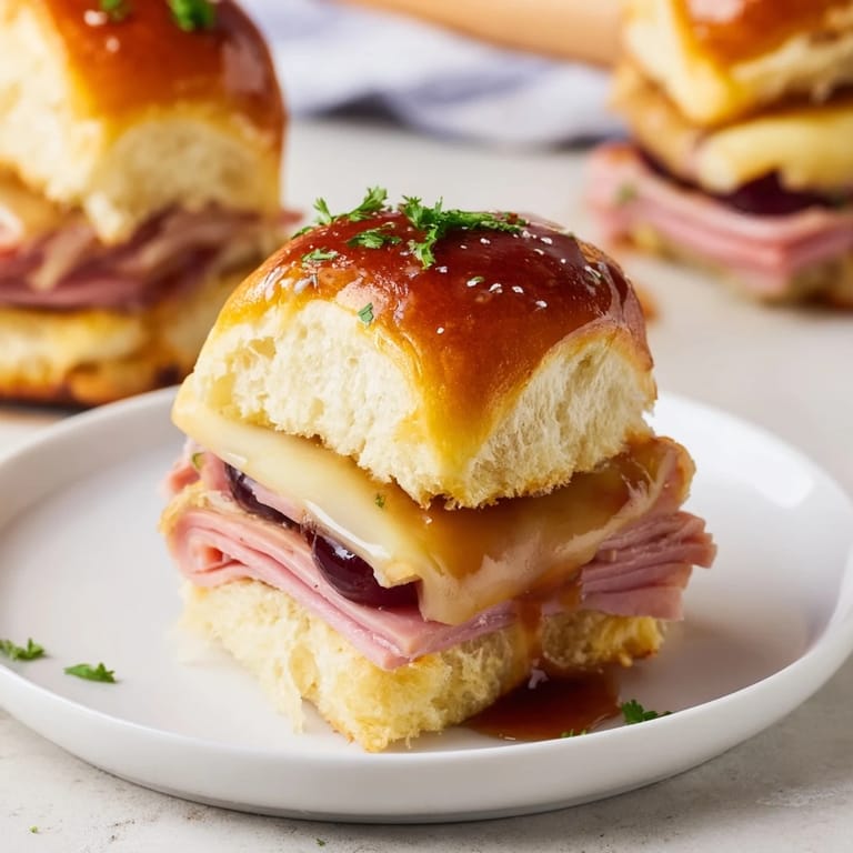 Save to Pinterest A playful twist on the classic ham and cheese slider, featuring a tangy cherry glaze that brings a sweet and savory kick to every bite. Perfect for parties, game days, or a family-friendly dinner.