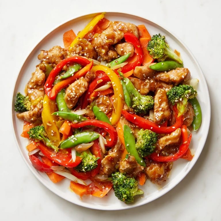 Save to Pinterest A vibrant, quick, and budget-friendly dish featuring tender chicken, colorful vegetables, and fluffy rice—all tossed in a savory stir-fry sauce.