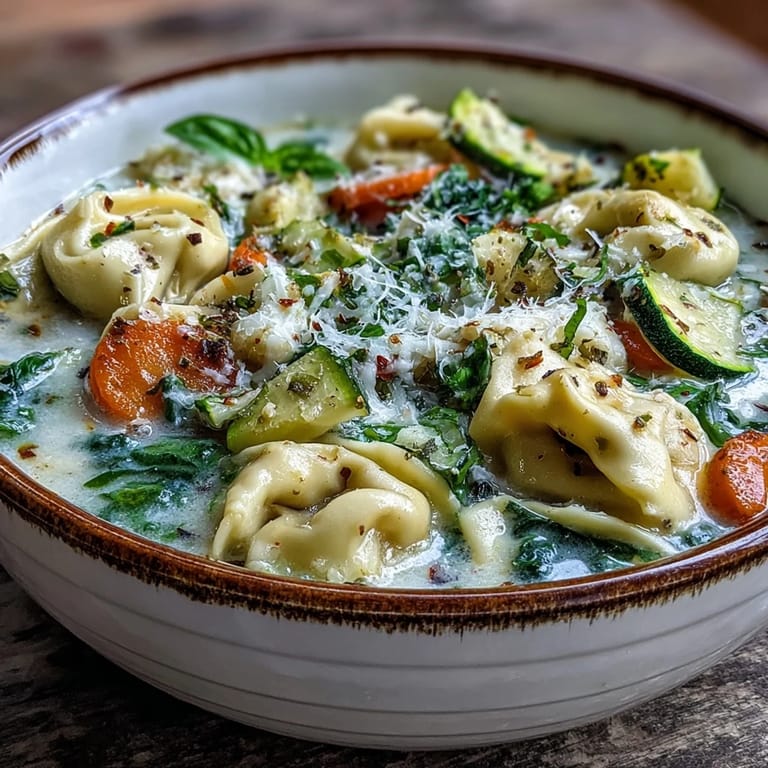 Save to Pinterest There's something about the smell of sautéing onions and celery that makes me think of my neighbor stopping by unannounced on a chilly Tuesday afternoon. She caught me mid-chop, flour somehow in my hair, and asked what smelled so good. That's when I realized this soup—creamy, loaded with tender tortellini, and ready in under an hour—had become my go-to answer when someone needs comfort without fuss. It tastes like you've been cooking all day, but your secret is just good timing and a handful of honest ingredients.