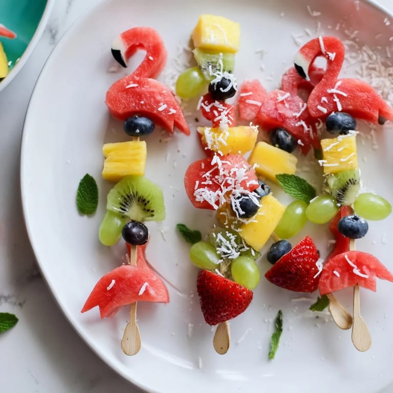 Save to Pinterest A vibrant, fun, and healthy tropical fruit platter featuring playful flamingo-shaped skewers—perfect for parties and summer gatherings.