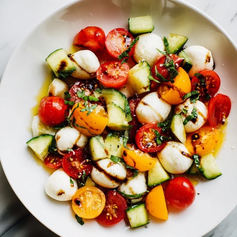 Save to Pinterest A festive twist on the classic Italian salad, featuring fresh mozzarella, ripe tomatoes, and basil, all chopped and tossed for easy serving perfect for holiday gatherings.