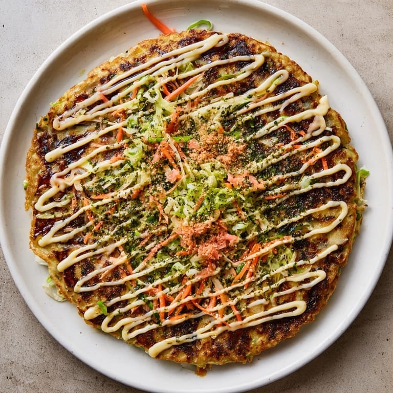 Save to Pinterest The steam rising from these savory pancakes always takes me back to a tiny street stall in Osaka, where I watched an elderly grandmother flip okonomiyaki with practiced hands. She pressed the batter down with her spatula, singing softly to herself while the cabbage sizzled and caramelized. That night, rain poured down outside, and inside, the smell of dashi and cooking pork filled every corner of the narrow shop. I've been chasing that perfect crisp-edged, tender-centered pancake ever since.