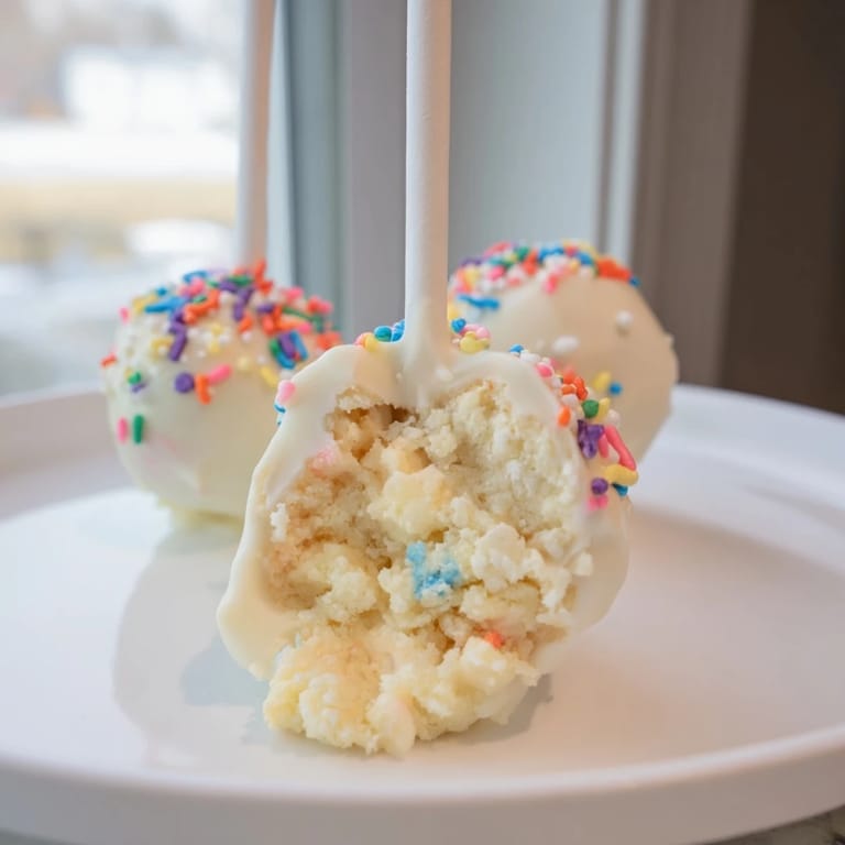 Save to Pinterest Lightened-Up Sugar Cookie Cake Pops are a delightful bite-sized treat that bring together the soft, sweet essence of sugar cookie cake with the creamy tang of Greek yogurt. Coated in a thin, glossy layer of chocolate and topped with colorful sprinkles, these cake pops offer a guilt-free indulgence perfect for dessert lovers seeking a lighter option. Their cheerful appearance and comforting flavors make them a wonderful addition to any celebration or a sweet pick-me-up.