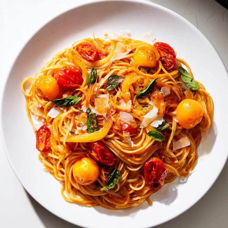 Save to Pinterest A comforting, aromatic pasta dish made entirely in one pan, featuring ripe tomatoes, fresh basil, and a hint of garlic—perfect for cozy evenings by the fire.