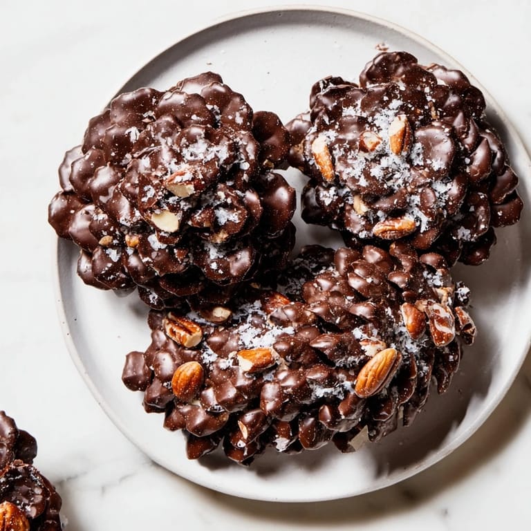 Save to Pinterest A whimsical, crunchy dessert featuring chocolate-coated nut clusters shaped like pinecones, perfect for holiday gatherings or as an elegant woodland treat.