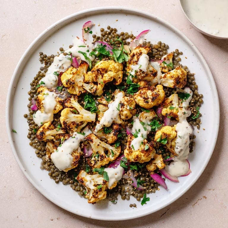 Save to Pinterest The smell of cumin and cauliflower caramelizing in the oven stopped me in my tracks the first time I made this. I had ordered something similar at a tiny Middle Eastern restaurant months earlier and spent weeks trying to recreate that perfect balance of smoky, tangy, and creamy. My kitchen experiments finally clicked when I decided to serve the lentils warm instead of cold, letting them soak up all that bright lemon dressing.