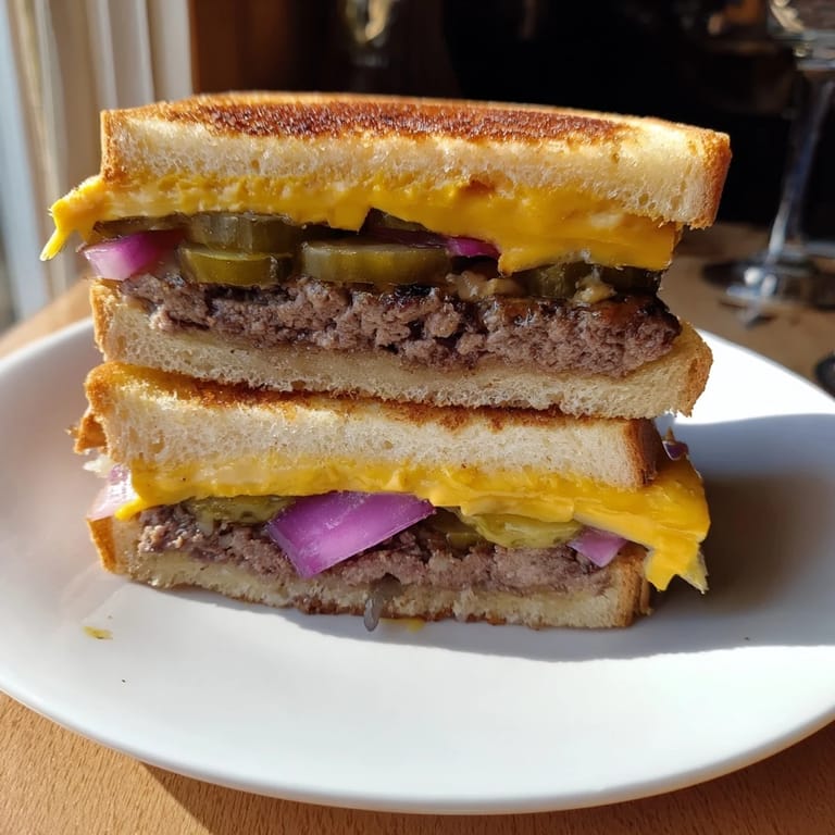 Save to Pinterest There's a moment in every kitchen when two ideas collide and something magical happens. Mine came on a lazy Saturday afternoon when I couldn't decide between craving a proper smashed burger or the comfort of a buttery grilled cheese. Why choose? I grabbed the ground beef, tossed it on a hot skillet, and smashed it thin with everything I had—the sizzle and crust that formed in those seconds told me I was onto something. By the time I'd melted cheese over that patty and pressed it between golden bread, I knew this wasn't just improvisation; it was the answer I didn't know I was looking for.