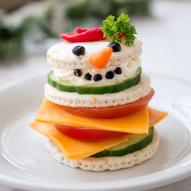 Save to Pinterest A whimsical and festive sandwich stack shaped like a snowmanβperfect for winter gatherings and a fun lunch for kids.