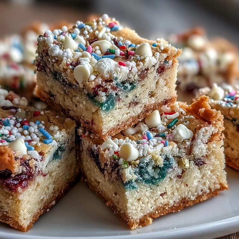 Save to Pinterest These bars are the kind of recipe that makes me feel like I'm doing something special without actually having to work that hard, which is genuinely my favorite type of cooking. If you make them once, I'm guessing they'll become your go-to for any celebration that needs a little color and cheer.