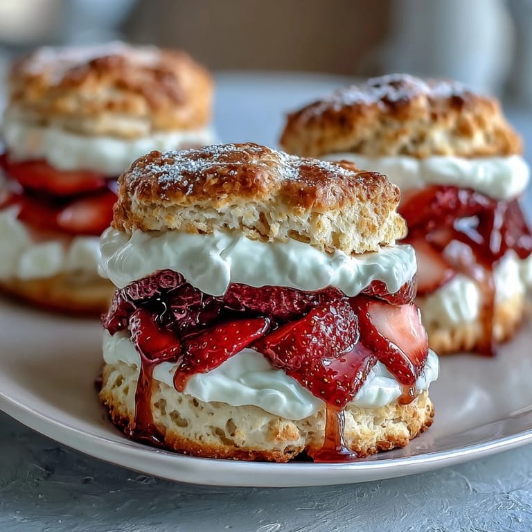 Save to Pinterest My neighbor handed me a strawberry shortcake last summer that tasted nothing like the dense, frosting-heavy versions I'd grown up with. It was light, it was elegant, and somehow it made an ordinary Tuesday feel special. That afternoon, I became obsessed with recreating it, and after some kitchen experiments, I realized the secret wasn't complication but restraint. These scones are buttery and tender without being heavy, the yogurt cream is tangy and fresh, and the berries stay bright instead of drowning in sweetness. It's the kind of dessert that makes people pause mid-bite and ask for the recipe.
