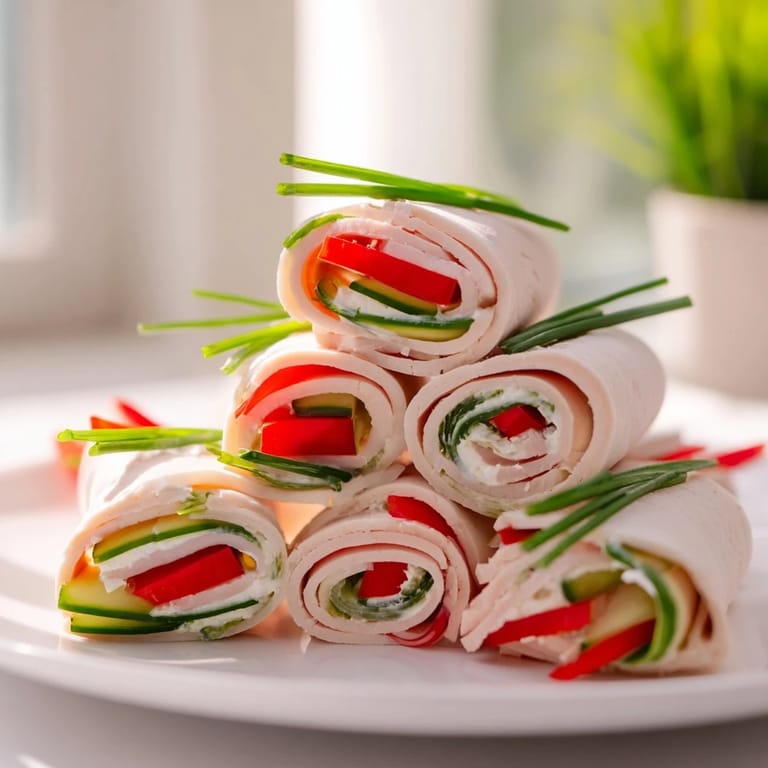 Save to Pinterest Tender turkey slices rolled and stacked for a simple protein-rich snack or appetizer Perfect for quick lunches or party platters